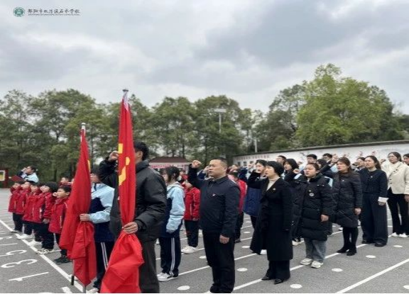 邵阳市双清区石齐学校小学部党员代表邓仕祥校长为全体师生讲述革命先烈袁国平的抗日故事,带领我们重温信仰的力量,号召我们传承红色精神,赓续革命意志。