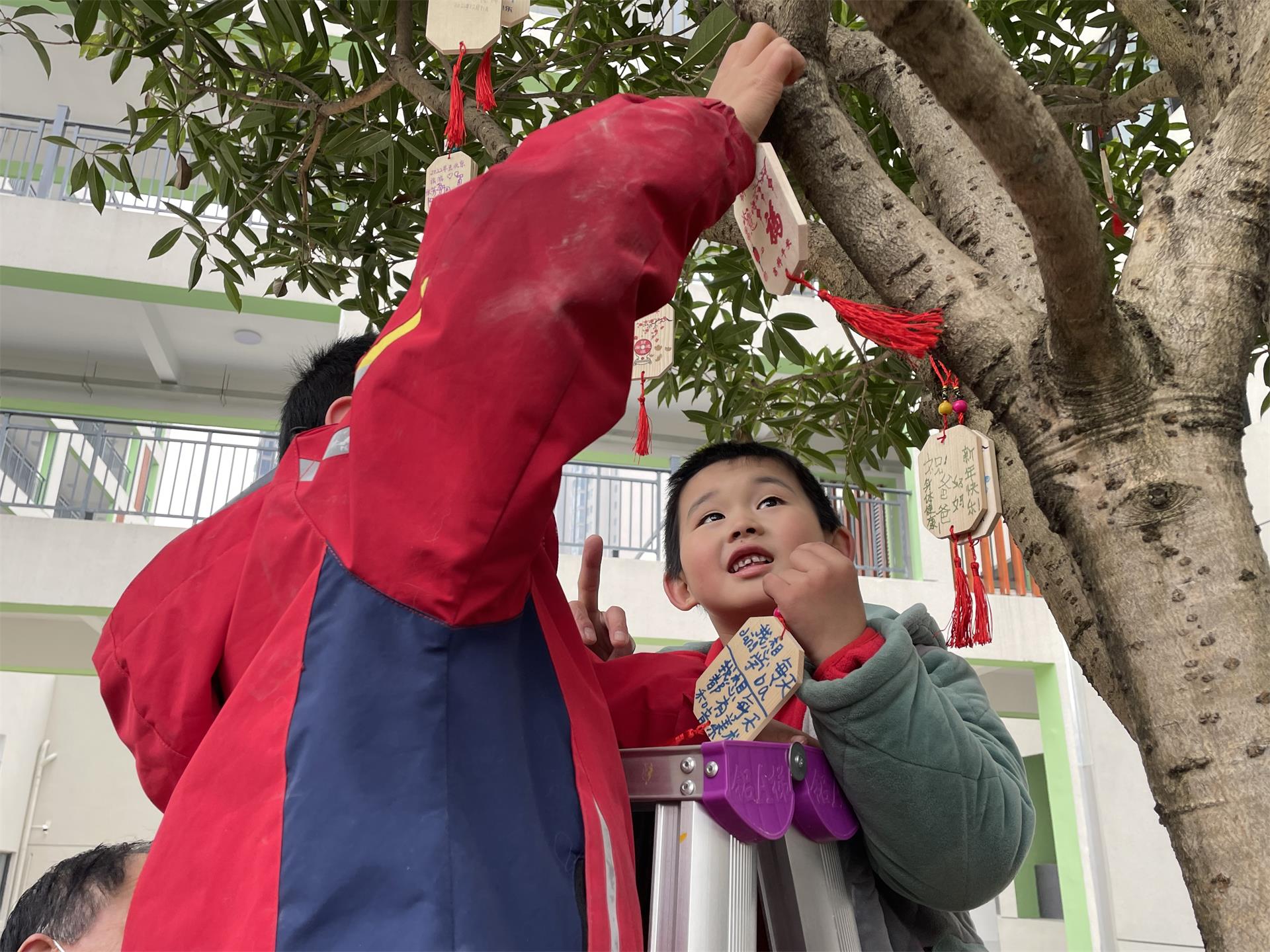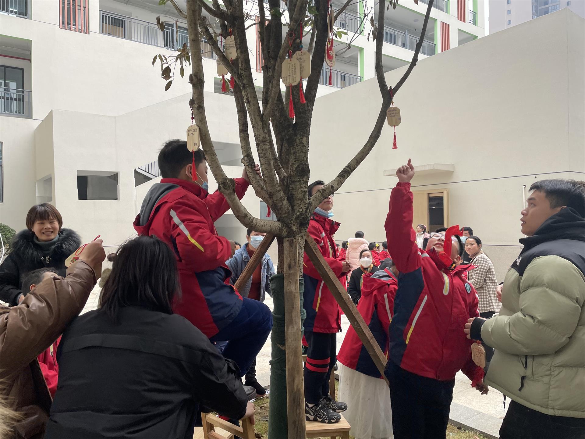 你瞧,我的心愿牌好看吗?家长会后家长和孩子们共同写下了新年心愿牌,共同挂在了石齐学校棵棵大树上,待来年取下一看,相信我们的小可爱们都已经实现了自己的心愿。