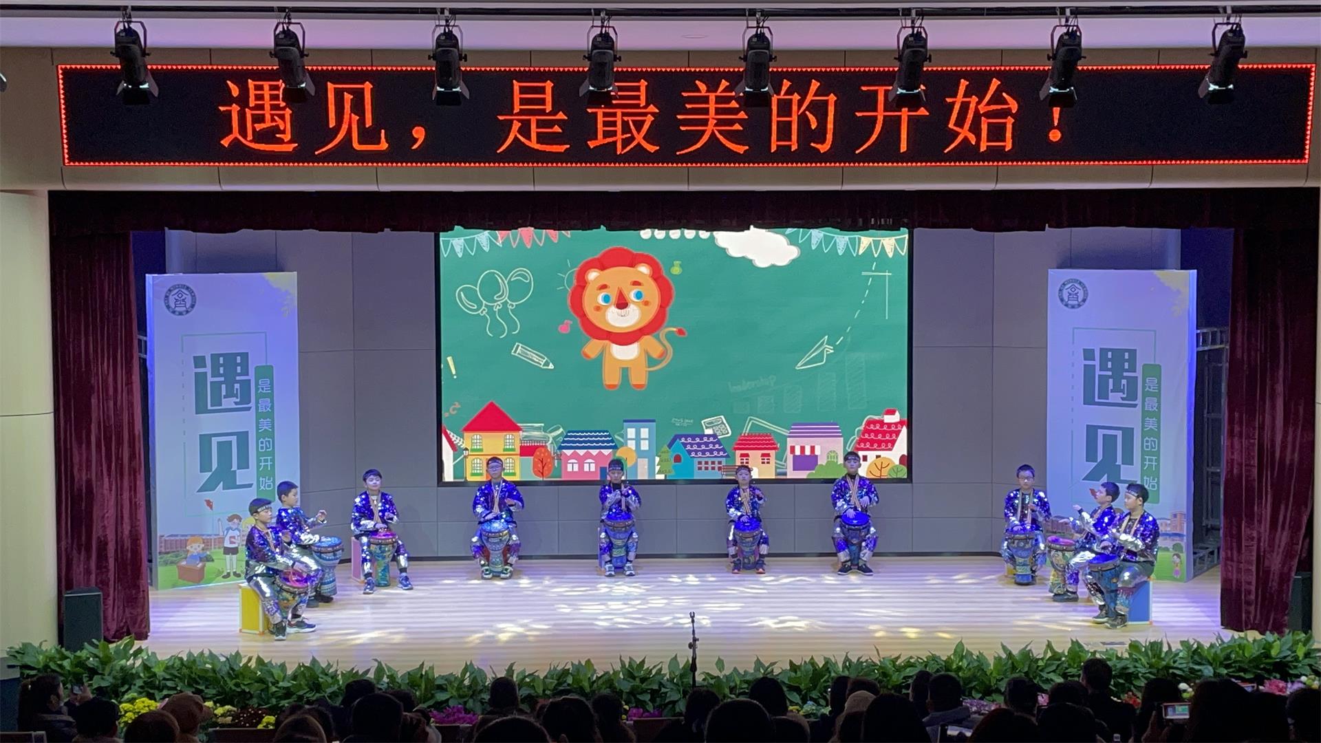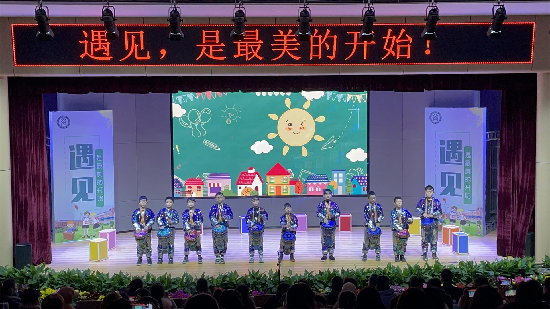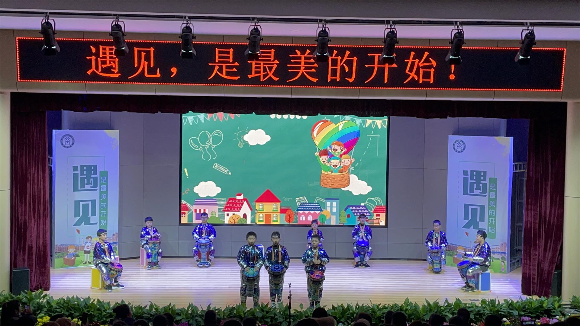 你们瞧,舞蹈班的孩子们手敲腰鼓,旋转跳跃的开场舞,给家长们带来了视觉盛宴!